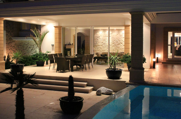 Villan är byggd 2008 helt i sten och i mycket hög kvalitet och har bla vunnit pris som Norra Cyperns vackraste villa vid den årliga fastighetsmässan 2010. Totala ytan om över 500m2 fördelar sig på fyra sviter med balkong/terrass, badrum, sovrum och klädförvaring. Vidare gemensamma ytor med hallar, vardagsrum med öppen spis, matsal, kök, tvättstuga, klädkammare, gästtoalett samt utomhusytor under tak.